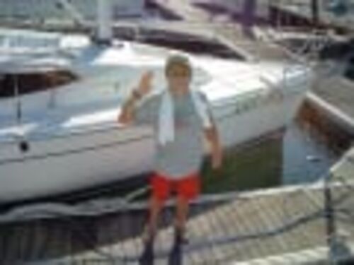 日曜日は江ノ島へ。 ダイゴローさんが来ているはず。とバースに向かうと案の定、既におります。 日よけテントを広げ、デッキでまったりと本を読んでいるなんざあ、 ヘミングウェイの趣。 早速クォーターバースに潜って燃料のチェックをすると、MAXまで指5本…