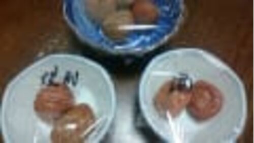 プレスチックのような臭いが気になる、5年前の梅干しの臭いとりの工夫。 日本酒、焼酎にそのまま浸けてみたものと、酒と焼酎と水で少し煮立てたものの3種類を試しました。 そのまま日本酒に二日ほど浸したものが一番良かった。 更に工夫して、何とか無駄にし…