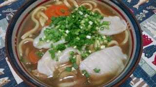 具は長ネギ、人参、しめじ、挽肉、水餃子。最後に万能ねぎをたっぷり。