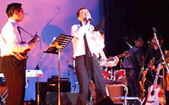 熱唱するヴォーカルの横で、ボーっと突っ立てるウクレレマンが私です。
