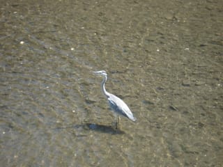 その脇が田越川で、今日はいつもよりずいぶんと水が綺麗だ。流れの浅瀬に「あおさぎ」