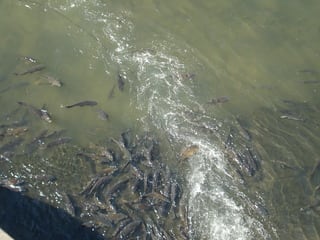 支流から勢いよく水が流れ込んでくるところに、鯉が群がっていた。