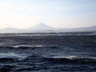 キャビンでの小宴会のあと、大船の忘年会会場へ移動。江ノ島弁天橋より富士山方向を
